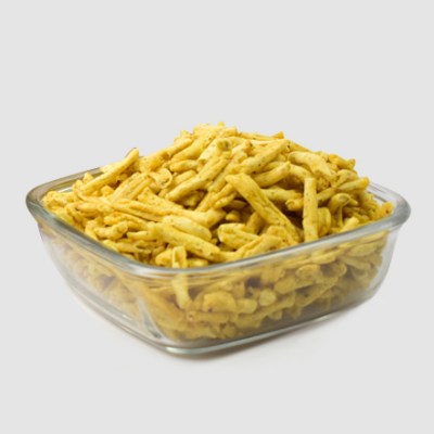 Lahsun sev name shows that it is made with lahsun (Garlic). This sev made with gram flour with some spices which include the lahsun as well. The quantity of lahsun is more than other spices. This sev is semi thick and crispy.