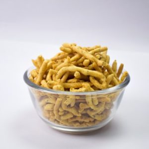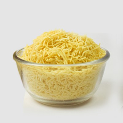 Aloo sev made by aloo (potatoes) with some special sweet spices. This sev gives a sweet and lightly spicy taste. It is thin and crispy.